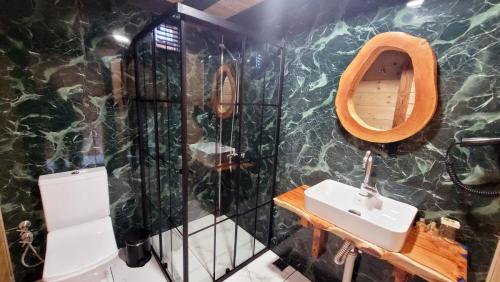 Bungalovumuz, doğal malzemeler ve modern tasarım anlayışının mükemmel bir birleşimini sunar. Taş duvarlar, ahşap detaylar ve geniş pencereler, iç mekanı doğal ışıkla doldurarak sıcak bir atmosfer yaratır.